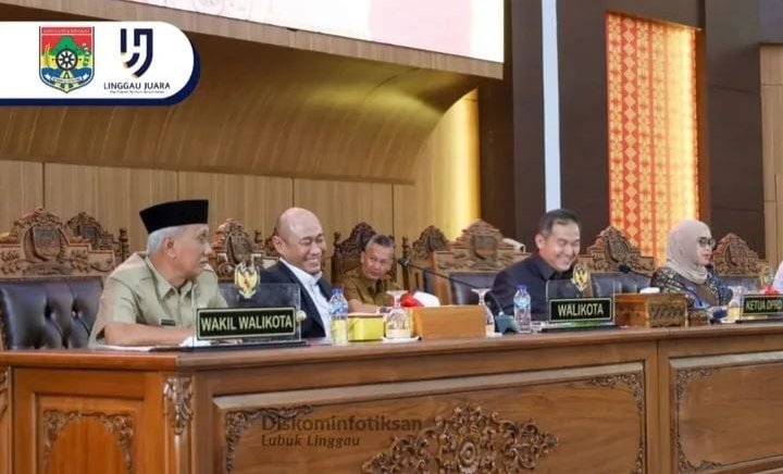 LUBUK LINGGAU – Wali Kota Lubuk Linggau, H Rachmat Hidayat didampingi Wakil Wali Kota Lubuk Linggau, H Rustam Effendi menghadiri rapar Paripurna DPRD Kota Lubuk Linggau dalam rangka mendengarkan pandangan umum fraksi-fraksi dewan terhadap 1 Raperda usulan Pemkot Lubuk Linggau dan jawaban fraksi-fraksi dewan atas tanggapan eksekutif terhadap 5 Raperda inisiatif di Ruang Rapat Paripurna DPRD Kota Lubuk Linggau, Senin (9/2/2026).